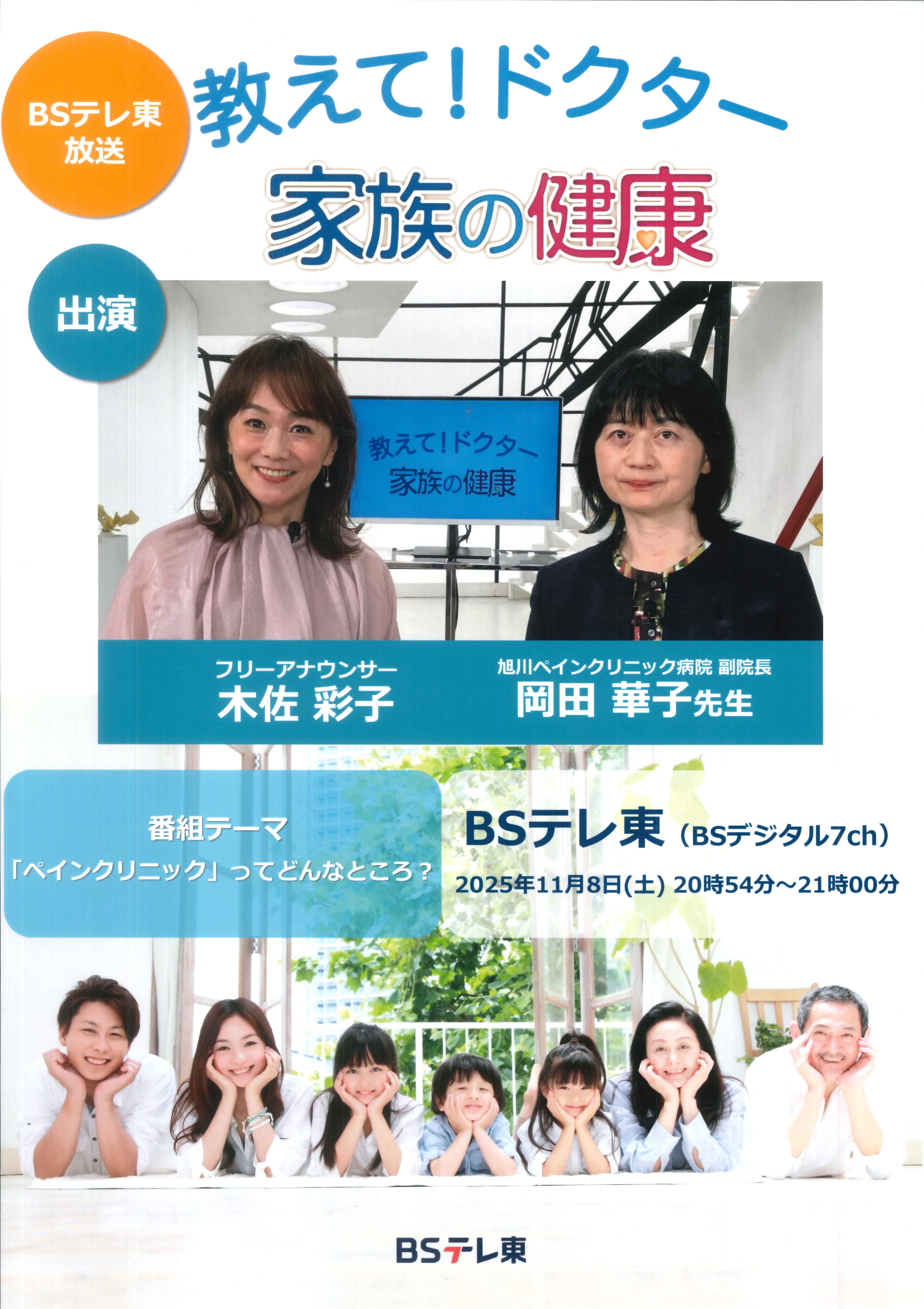 当院の岡田華子副院長がBSテレ東「教えて!ドクター 家族の健康」(毎週土曜日20時54分~21時00分)の撮影に参加してきました。