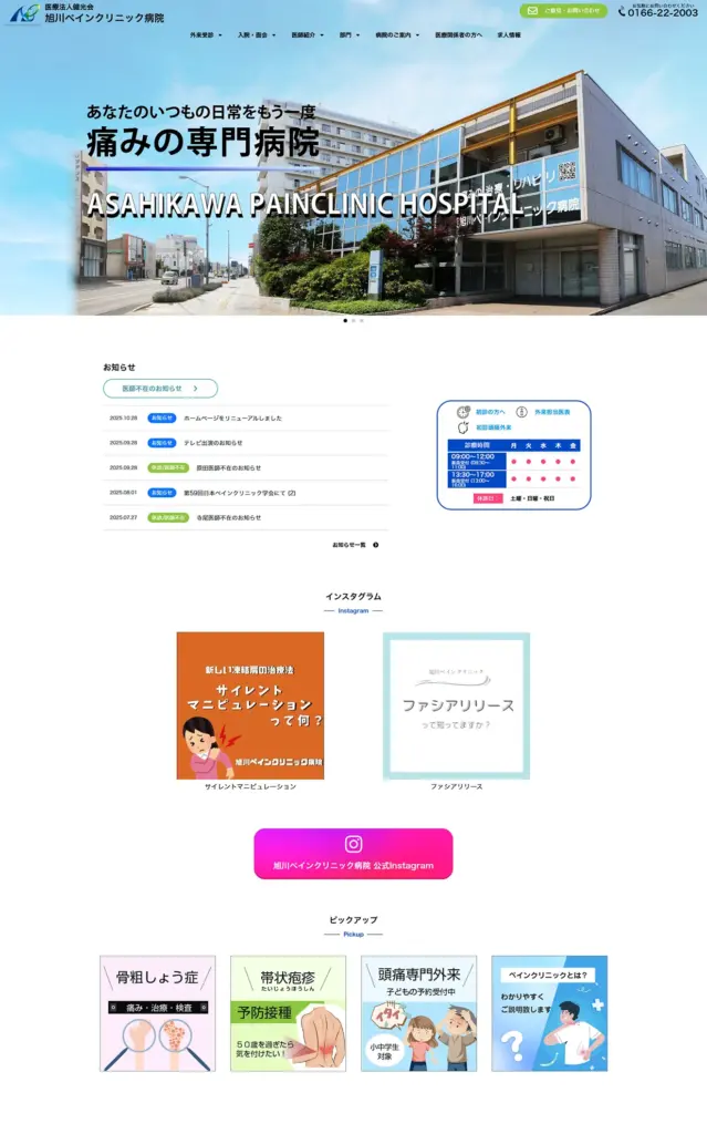 ホームページを「リニューアル」しました お知らせ 2025.10.28 この度、当院のホームページをリニューアルいたしました。痛みに関する治療法など随時発信していきますので、今後ともよろしくお願いいたします。