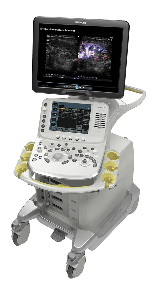 皮膚の上にゼリーをつけて機器をあてるだけで、被ばくなどの心配もなく、痛みもありません。