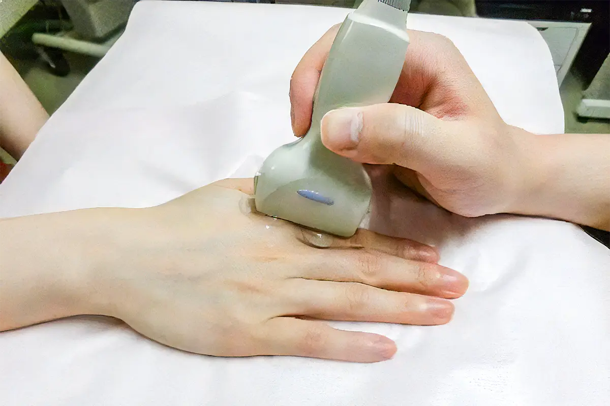 当院では関節の腫れ具合を見るためにエコー検査を行っています。