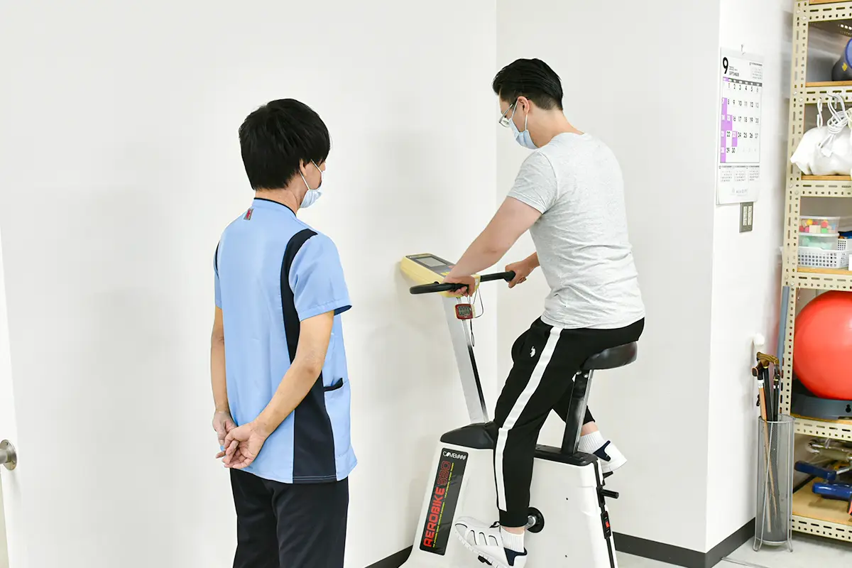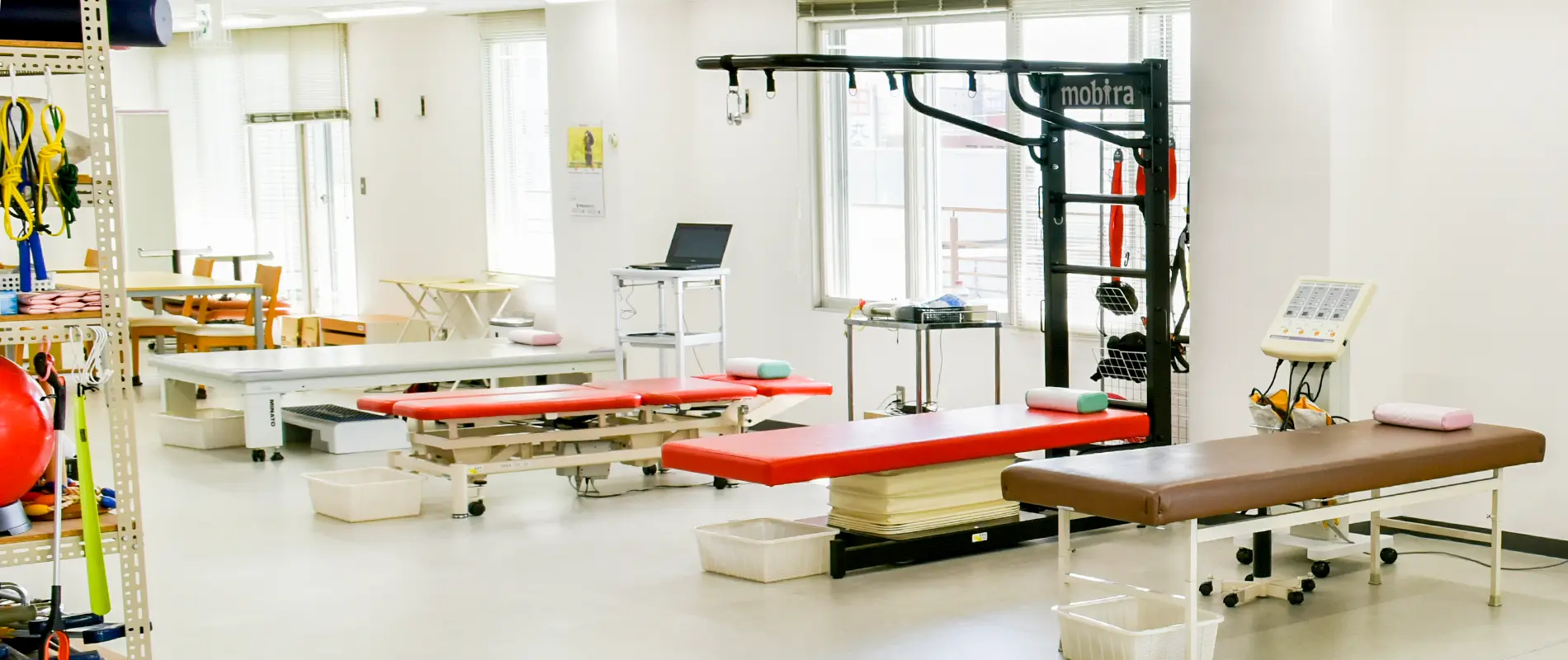 リハビリでは、手足を大きく動かすストレッチや筋力訓練を行う場合がありますので、動きやすい服装で来院して頂きますようご協力宜しくお願い致します。