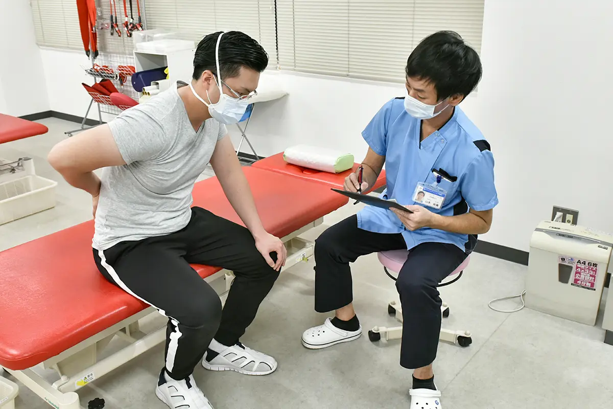 ※アクセサリー類 (ネックレスなど) やベルトは治療を妨げ、破損する可能性があるため、リハビリ中は外して頂く場合がございます。ご協力宜しくお願い致します。